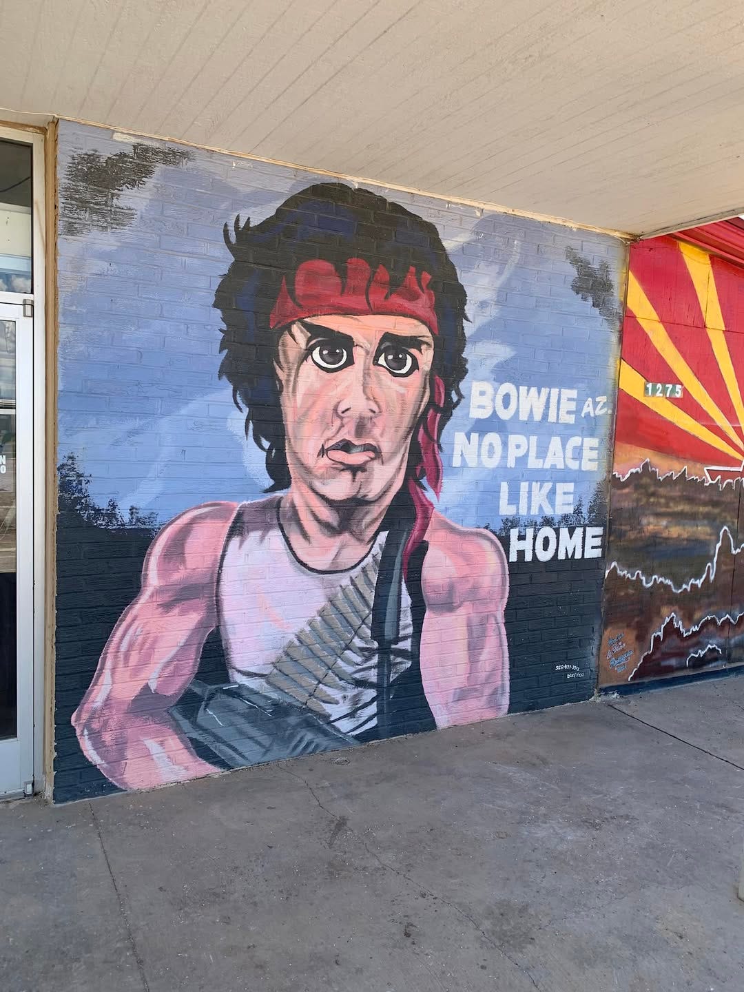 The real life Bowie (pop. 647) was founded in 1880 as a supply depot off the Southern Pacific Railroad for nearby Fort Bowie. While the character Rambo famously wields a Bowie knife (an implement named for Alamo hero James Bowie) the fort and the town actually took their names from George Washington Bowie, the commander of the 5th California Infantry Regiment.